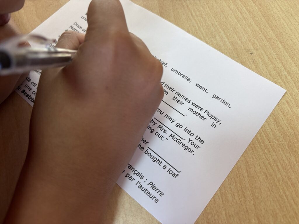 Pour célébrer cet événement, avec des milliers d’autres collégiens en Europe, tous les élèves de cinquième du collège participent à la dictée multilingue en anglais. Cette année, il s’agit d’un extrait de « The Tale of Peter Rabbit », une célèbre histoire écrite et illustrée par l’auteure anglaise Beatrix Potter.